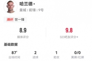 體育資訊12月21日訊 曼城在本輪英超對陣西漢姆聯(lián),哈蘭德本場數(shù)據(jù)如下: