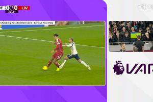 主裁判判罰聲明:“經(jīng)回看確認(rèn),托特納姆熱刺隊(duì)7號(hào)球員(西蒙斯)抬腳亮鞋釘,踢中利物浦隊(duì)4號(hào)球員小腿上部,此行為構(gòu)成嚴(yán)重犯規(guī)。我的最終判罰為紅牌。”