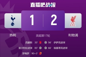 體育資訊12月21日訊 英超第17輪,利物浦客場(chǎng)2-1擊敗熱刺。