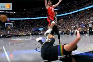 GIF-申京撞倒約基奇被吹進攻犯規,火箭挑戰失敗
