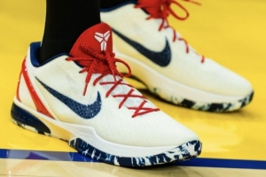 熱身階段,庫里上腳科比6代美國隊PE,美國國旗元素融入球鞋,清爽養眼。