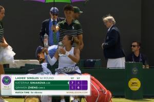 第二盤比賽,西尼亞科娃3-2領先時,西尼亞科娃申請醫療防護員,比賽暫停約5分鐘后恢復進行!