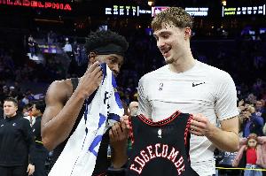 弗拉格全場出戰(zhàn)36分半鐘,16投8中(三分2中0)、罰球8中8,拿下24分4籃板3助攻1蓋帽,VJ·埃奇庫姆打了34分44秒,21投10中(三分11中3)、罰球3中3,砍下26分6籃板4助攻。