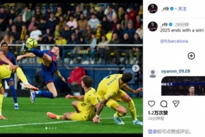 在社交媒體上,萊萬曬出自己射門圖慶祝勝利,他寫道:以一場勝利結束2025年。