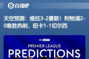 體育資訊12月22日訊 英超第17輪再賽一場,維拉2-1擊敗曼聯,英國天空體育本輪預測繼續命中!