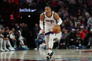 上半場,國王球星威少表現還可以,場上打得很興奮,在14分鐘的時間里,投籃12中4,三分球6中3,罰球2中0,拿到11分3籃板1助攻1搶斷的數據,有3次失誤。
