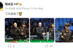 體育資訊12月22日訊 斯諾克蘇格蘭公開賽決賽,常冰玉2-9韋克林,無緣個人排名賽首冠。