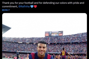 巴薩官方寫道:“感謝你帶來的足球,以及感謝你以驕傲和責任心捍衛我們的顏色,拉菲尼亞????”