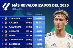 體育資訊12月24日訊 德國轉會市場列出了2025年西甲球員身價上漲排名,赫伊森上漲5200萬歐居首,居萊爾上漲4500萬歐次席。