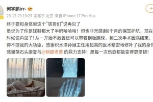 體育資訊12月25日訊 今日,國安球員何宇鵬更新社媒,社媒顯示他于今日摘除了用于固定左足第五跖骨的鋼板。