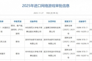 體育資訊12月25日訊 今日國家新聞出版署公開了2025年12月的國產(chǎn)網(wǎng)絡(luò)游戲版號審批信息。共144款國產(chǎn)網(wǎng)絡(luò)游戲、3款進(jìn)口網(wǎng)絡(luò)游戲過審,還有7款游戲變更審批信息。
