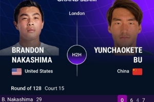 體育資訊7月2日訊 在凌晨結束的一場溫網男單首輪比賽中,布云朝克特和中島布蘭登的比賽因天色過晚推遲至周三進行。