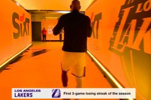 GIF-詹姆斯返回更衣室,字幕給的是湖人賽季首次三連敗!