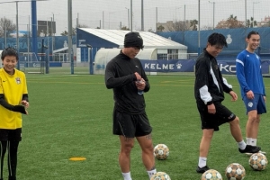 體育資訊12月26日訊 博主“稀鹽酸青訓頻道”曬圖,泰山球員謝文能現身西班牙人訓練基地。