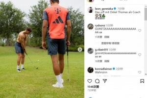 拜仁晉級(jí)世俱杯8強(qiáng),球員們迎來(lái)了休息日,格雷茨卡社媒曬出與穆勒一起打高爾夫球的照片,并配文:“與托馬斯叔叔一起度過(guò)休息日,他擔(dān)任教練?!?/p>