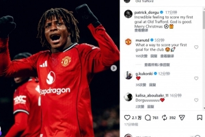 多爾古社媒曬出慶祝進(jìn)球的照片,配文:“在老特拉福德打入首球的感覺(jué)不可思議。上帝眷顧,圣誕快樂(lè)。”