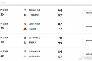 山西竹葉青酒 82-77 江蘇南鋼。山西女籃沒有讓主場連敗發生,她們在末節最后一分鐘還落后1分的情況下驚險完成逆轉,劉貝命中價值連城的三分球,并在隨后一個回合為霍俊彤送出精彩傳球,埃格博20分,陳玉婕16分,林育婷15分,劉貝8分7助攻。江蘇女籃末節凈輸10分,功虧一簣,羅欣棫空砍21分。