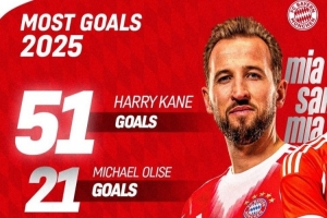 體育資訊12月28日訊 2025年即將結(jié)束,拜仁俱樂(lè)部官方也回顧總結(jié)了多項(xiàng)年度數(shù)據(jù):