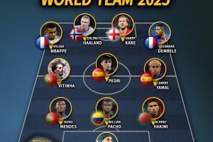 體育資訊12月28日訊 IFFHS(國際足球歷史和統計聯合會)近日公布了2025年年度最佳陣容評選結果,姆巴佩、哈蘭德、凱恩、登貝萊等11人入選。