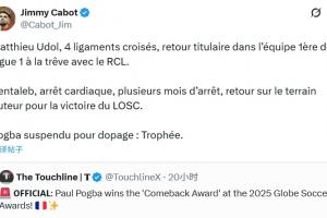 體育資訊12月29日訊 博格巴昨日獲得環足獎最佳復出獎。前法甲球員吉米·卡博特在社媒上轉發了博格巴獲獎的信息并嘲諷博格巴獲獎。
