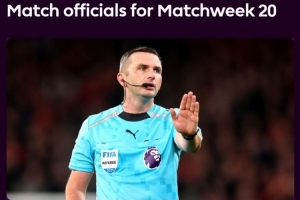 體育資訊12月30日訊 英超官方公布聯賽第20輪各場裁判,奧利弗將執法曼城vs切爾西。
