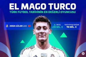 而居萊爾也是第一個達(dá)到9000萬歐元身價(jià)的土耳其球員,本賽季這位20歲的皇馬中場出戰(zhàn)25次,貢獻(xiàn)3球7助。