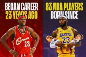 據統計,目前NBA中有83名球員在勒布朗·詹姆斯于2003年10月30日完成職業生涯首秀時甚至還沒有出生。