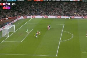在上半場補時階段,維拉中場直塞發動反擊,桑喬前插后橫傳,就在沃特金斯即將踢空門時,薩利巴倒地伸腿將球鏟出底線。