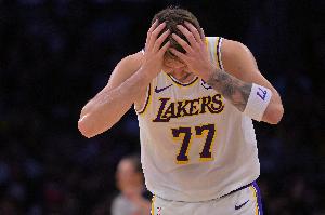 湖人銜接段兩次被活塞拉開兩位數分差,擺在湖人面前的一個現實是東契奇不能下。