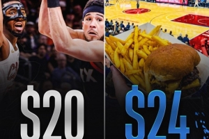 根據(jù)票務(wù)網(wǎng)站信息,本場比賽最低門票價(jià)格為20美元。而在球館內(nèi),你點(diǎn)一個(gè)漢堡薯?xiàng)l組合都需要24美元。