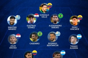 后衛(wèi):南德斯(烏拉圭)、古斯塔沃-戈麥斯(巴拉圭)、里貝羅(巴西)、因卡皮耶(厄瓜多爾)