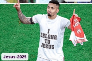 在上輪英超阿森納戰勝阿斯頓維拉的比賽中,熱蘇斯打進了他傷愈復出后的首粒進球,他進球后脫掉了自己的球衣慶祝,露出了里面的一句話:“我屬于耶穌。” (注:這并非原創的球衣標語,而是受到巴西傳奇球星卡卡的啟發,2007年AC米蘭在歐冠決賽中擊敗利物浦時,卡卡就曾身穿印有這句話的內衣)。