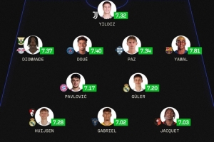 前衛:揚·迪奧曼德(萊加內斯、萊比錫,7.37分)、杜埃(巴黎,7.40分)、帕斯(科莫,7.34分)、亞馬爾(巴薩,7.81分)