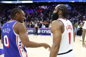 “但我看很多哈登的比賽,那很瘋狂,我還和他當過隊友,有一段時間他的比賽讓你難以置信,我們都在學他的后撤步。我也看很多艾弗森的比賽,艾弗森和韋德,那是我最喜歡的球員,但是費城的3號不能穿了。”