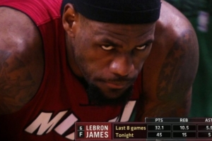 系列賽前5場比賽,熱火以2-3落后,儼然已經在懸崖邊上。詹姆斯在G6火力全開,全場26中19,三分4中2,罰球9中5,得到45分15籃板5助攻,率領熱火以98-79擊敗凱爾特人,將系列賽拖至搶七大戰。