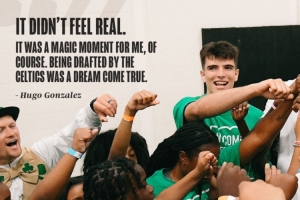 體育資訊7月3日訊 綠軍新秀烏戈-岡薩雷斯在球迷活動中,和小球迷分享到自己被選中的經(jīng)理:“那一刻感覺不真實,對我來說是個神奇的時刻,被凱爾特人(第28順位)選中,實現(xiàn)了我的夢想。這是NBA歷史上贏球最多的球隊,能成為這樣的球隊一員是一種榮幸”