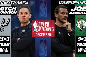 體育資訊01月03日訊 NBA官方宣布,凱爾特人馬祖拉與馬刺米奇·約翰遜分別當選12月最佳教練。