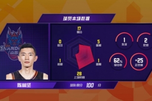 ??1月2日,2025-2026賽季CBA聯賽常規賽第9輪,山東高速主場100-85戰勝新疆伊力特,收獲2連勝。本賽季加入球隊的前鋒陳林堅發揮出色,8投5中,得到本隊國內球員最高分17分,其中包含3記三分球。本場比賽過后,陳林堅職業生涯三分球命中總數達到了1000記,成功解鎖個人新成就。