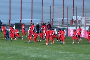 體育資訊1月3日訊 據記者Kerry Hau報道,穆西亞拉參加拜仁訓練之前的熱身。