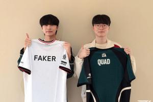 體育資訊7月3日訊?FLY戰隊曬Quad與Faker交換隊服照片。