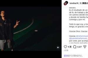體育資訊1月3日訊 拜仁球星路易斯·迪亞斯不僅有著出色的進球能力,哥倫比亞人也是一位音樂愛好者。在新年來臨之際,迪亞斯在INS上發布了一段音樂視頻。特別之處在于,這是他個人第一首單曲的官方MV!