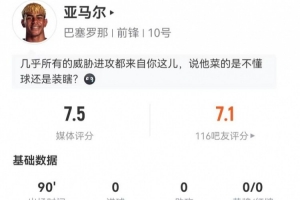 體育資訊1月4日訊 巴薩在本輪西甲對陣西班牙人,亞馬爾本場數(shù)據(jù)如下:
