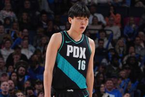 GIF-楊瀚森大帽!還蓋到哈珀頭上出界!開拓者球權!
