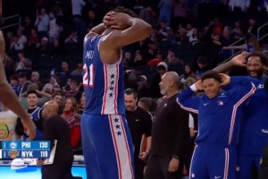 GIF-76人在麥迪遜擊敗尼克斯 恩比德跳舞慶祝&洛瑞和莊神模仿