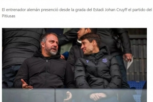 體育資訊1月4日訊 西班牙《每日體育報(bào)》報(bào)道,當(dāng)?shù)貢r(shí)間周日,巴薩主帥弗里克趁著一線隊(duì)休假的空檔與巴薩體育副主管博揚(yáng)一同前往約翰·克魯伊夫球場(chǎng),現(xiàn)場(chǎng)觀看了西協(xié)乙巴薩競(jìng)技隊(duì)(巴薩B隊(duì))4-0大勝伊比薩島的比賽。