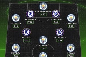 數據網站Whoscored也評選出兩隊本賽季英超評分最高陣容,曼城7人入選。具體如下:
