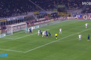 比賽第74分鐘,國米右側角球機會,圖拉姆門前用肩膀將球撞進球門!
