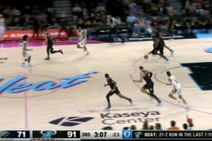 GIF-阿德巴約外線投進三分,熱火21-2的高潮領先到20分