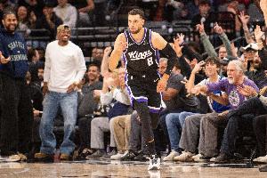 上半場,迎來復出的國王球星拉文表現不俗,替補出戰16分鐘,投籃6中3,三分球2中1,罰球2中2,拿到9分1助攻的數據,不過正負值-14全隊最低。
