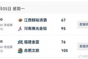 2025-2026賽季W(wǎng)CBA常規(guī)賽今日僅兩場(chǎng)B組比賽。河南和合肥兩隊(duì)均毫無懸念在客場(chǎng)收獲大勝。